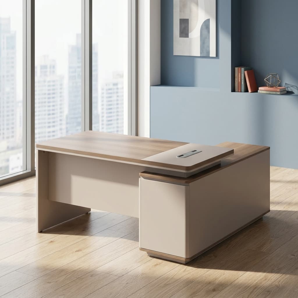 The neutral beige and wood finish blends easily with different interior styles. Whether your space is modern, minimalist, or corporate, this desk complements it perfectly.