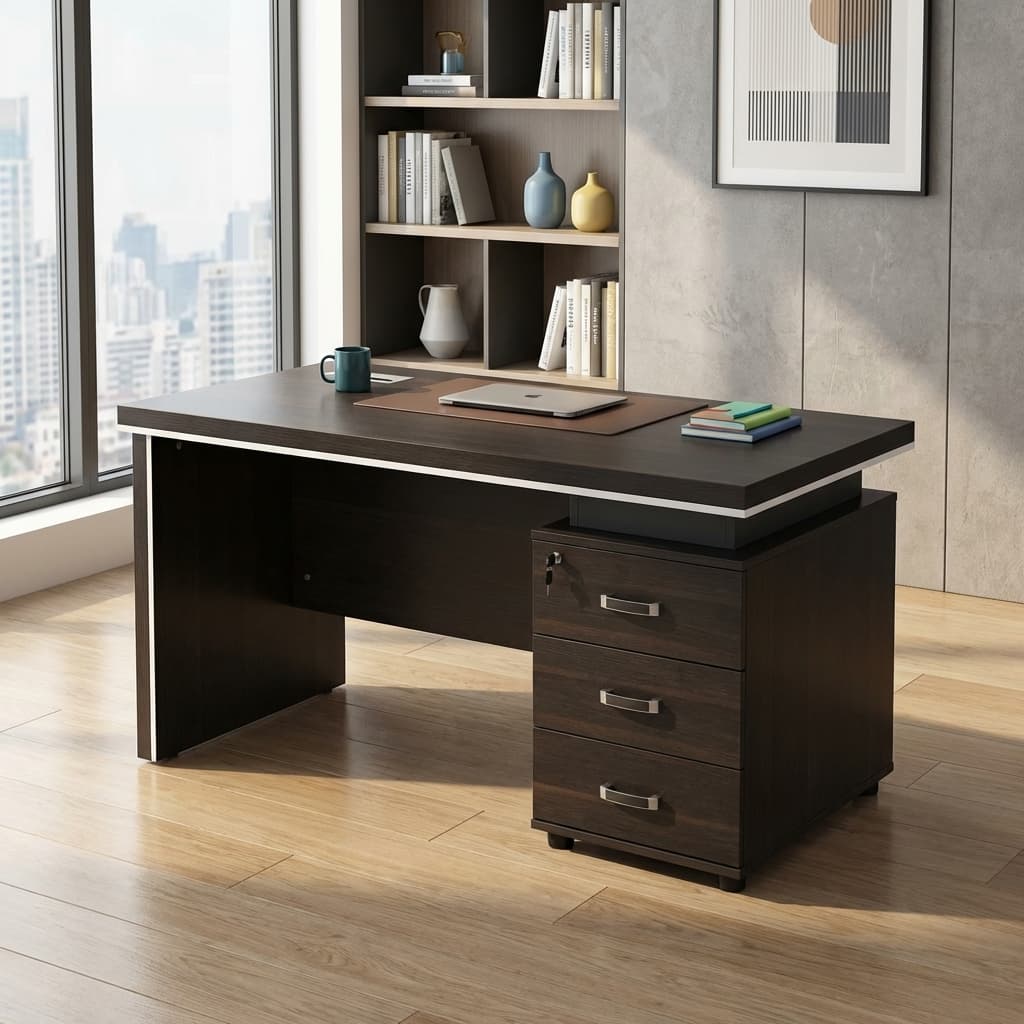 The 1200MM Executive Office Desk with Fixed Drawers is a compact and professional workstation designed for modern offices, home offices, and corporate environments. Its rich dark wood finish creates a warm and sophisticated appearance, allowing it to blend seamlessly with contemporary office interiors.