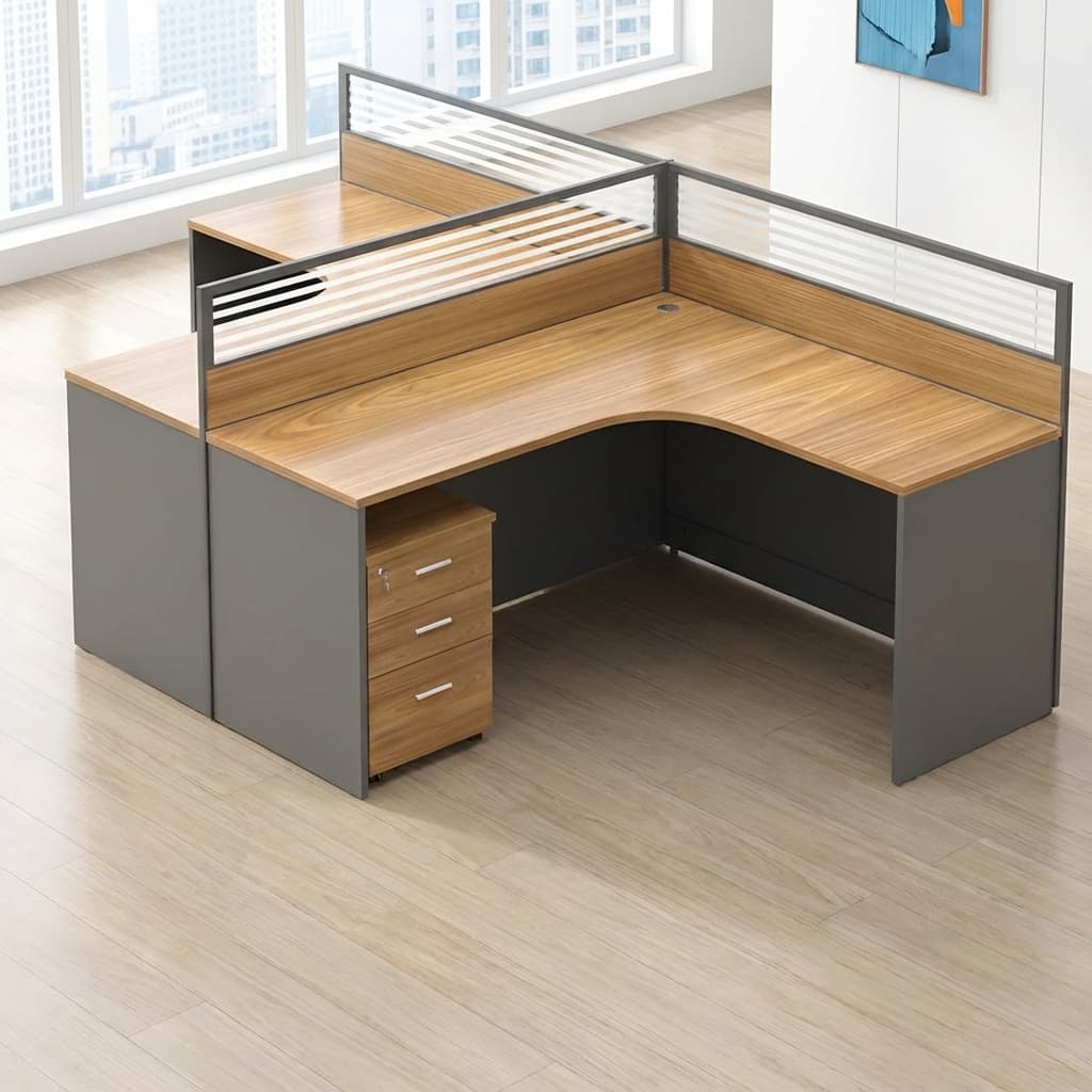 Each workspace is separated by durable partition panels that offer privacy while maintaining an open, professional office layout. The side partitions allow easy communication between users, fostering teamwork while ensuring personal workspace boundaries.