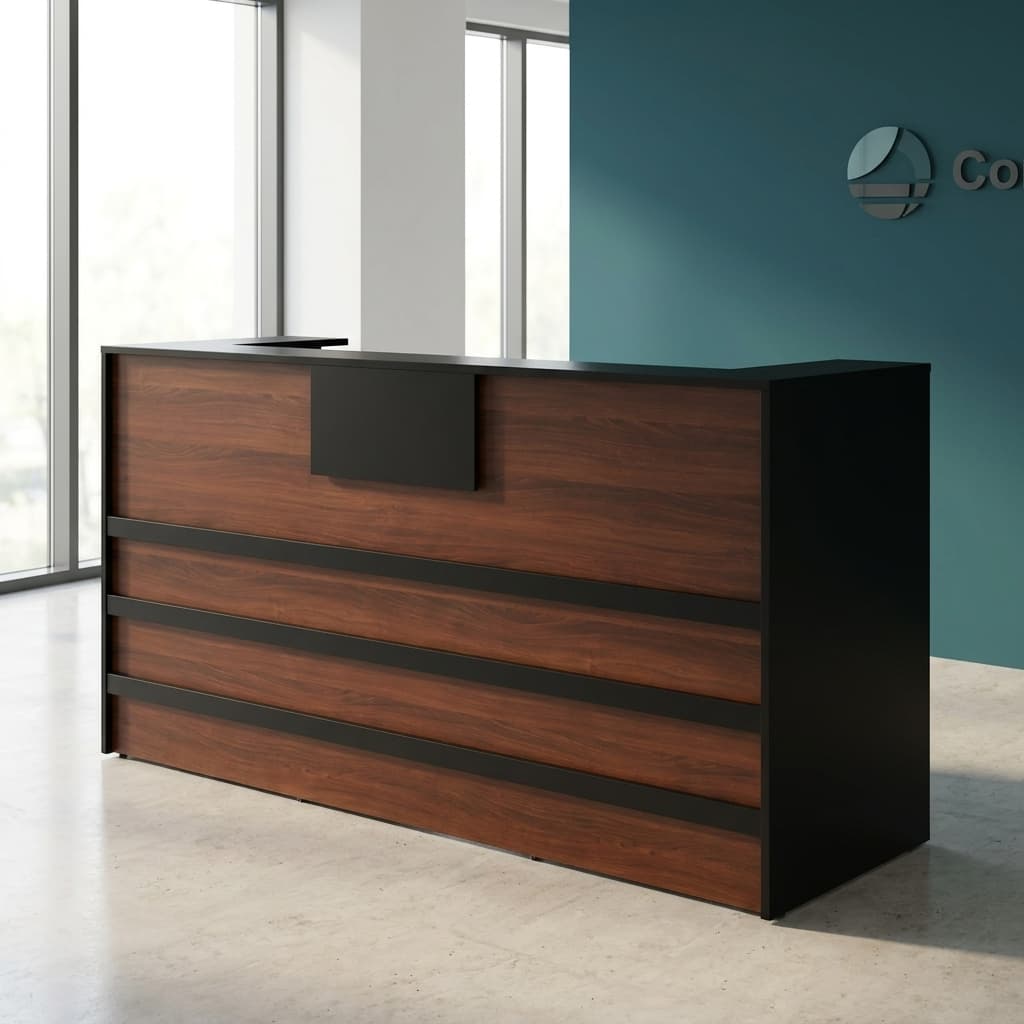 Crafted using high-quality engineered wood, this desk combines durability with a refined finish that blends well with contemporary interiors. The rich wood tones paired with contrasting accents give it a sophisticated and welcoming look, making it the focal point of any reception space.