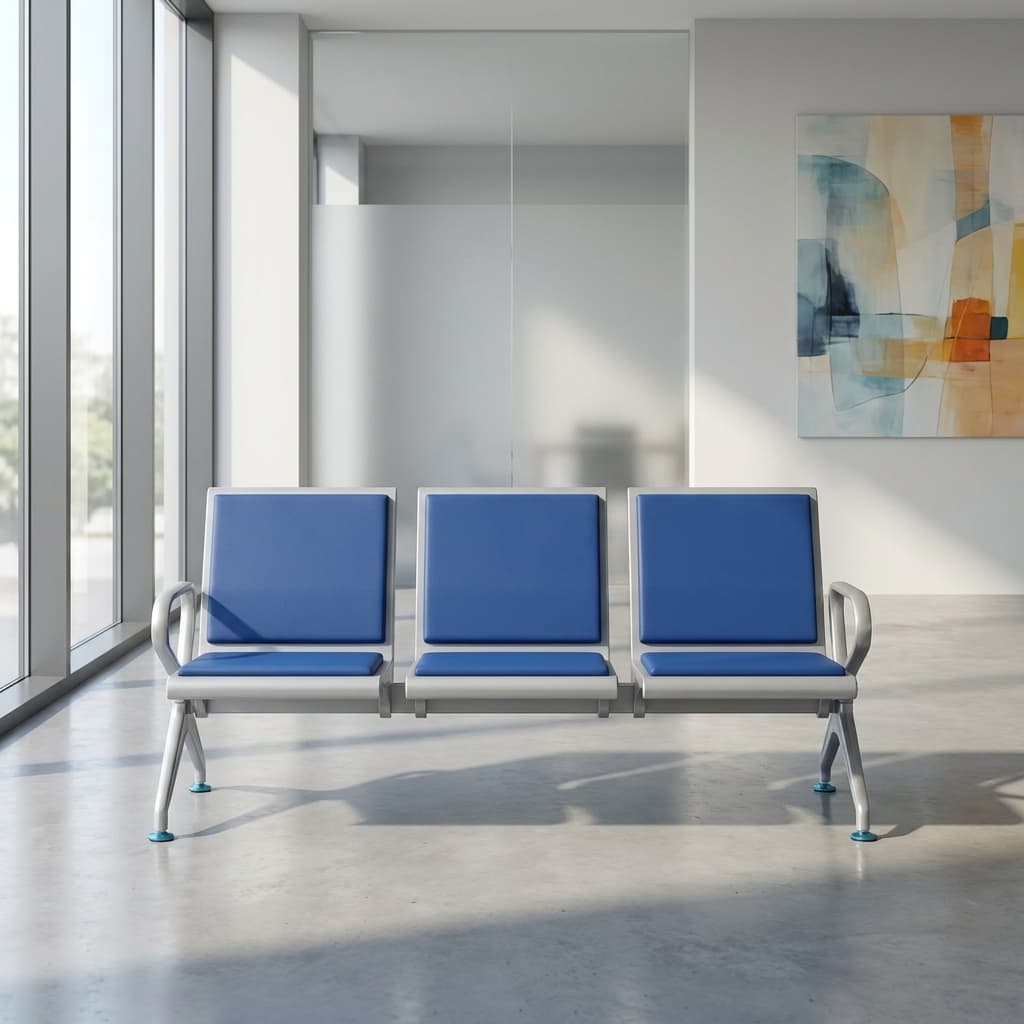 Overall, the 3-Seater Waiting Bench (Blue) combines comfort, durability, and functionality, making it an essential addition to any professional waiting area.