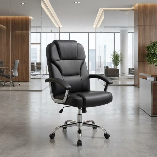 Premium black PU leather upholstery for a sleek executive look