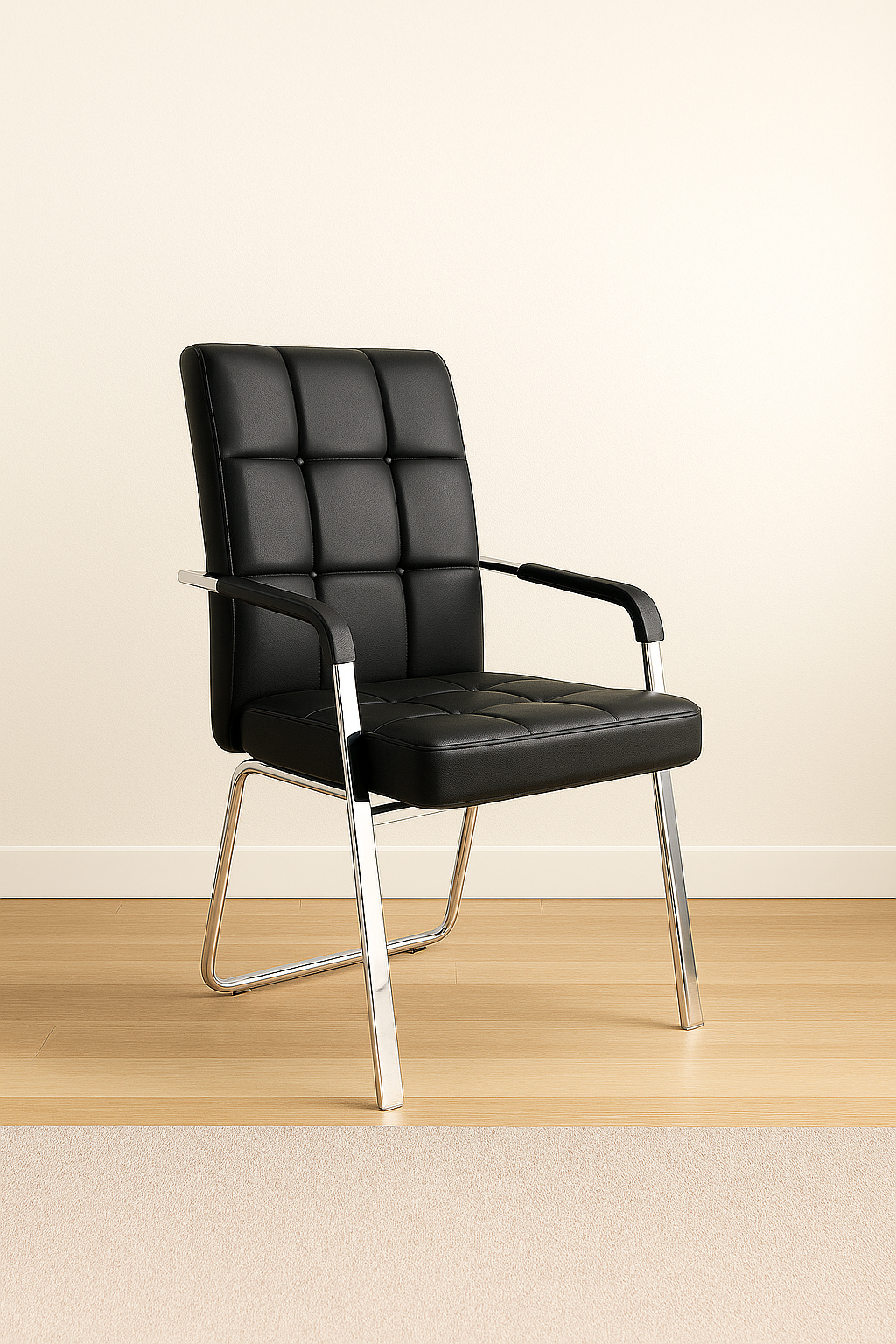 Make a polished first impression with this stylish visitor office chair, designed for reception areas, meeting rooms, and executive guest seating. Its tufted black leather seat and sleek chrome frame offer both comfort and sophistication for your professional space.