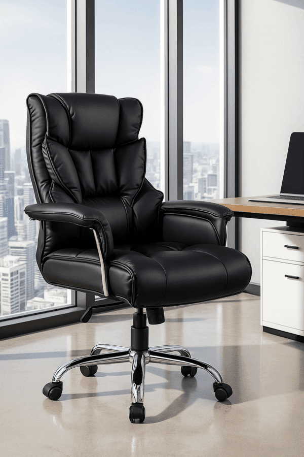 Crafted for those who demand more than just a place to sit, this executive chair delivers an unmistakable combination of comfort, authority, and striking design. Wrapped in soft faux leather with full-body cushioning, its winged high-back silhouette commands attention while offering head-to-toe ergonomic support.