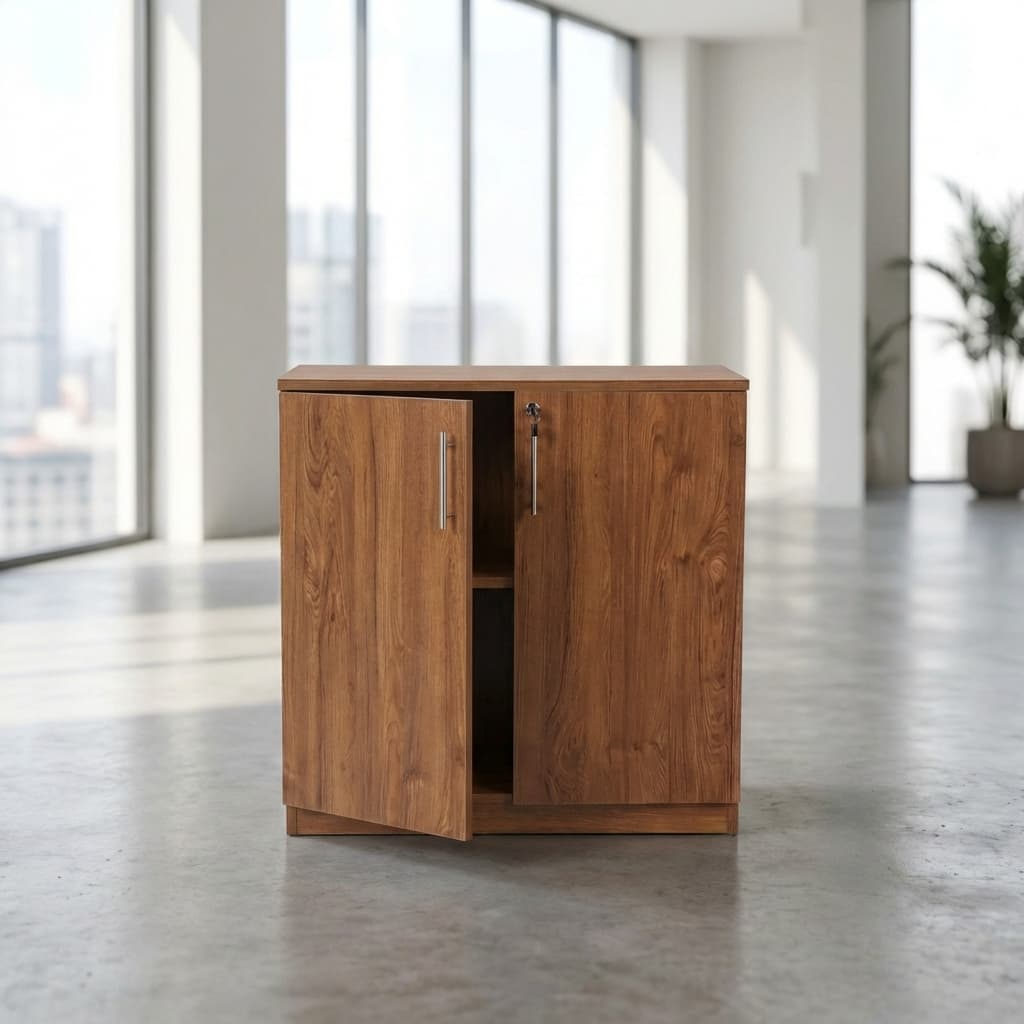 Organize your workspace in style with this compact wooden storage cabinet. Featuring a rich walnut finish and practical design, it offers a blend of functionality and classic appeal, ideal for offices, receptions, or home study areas.