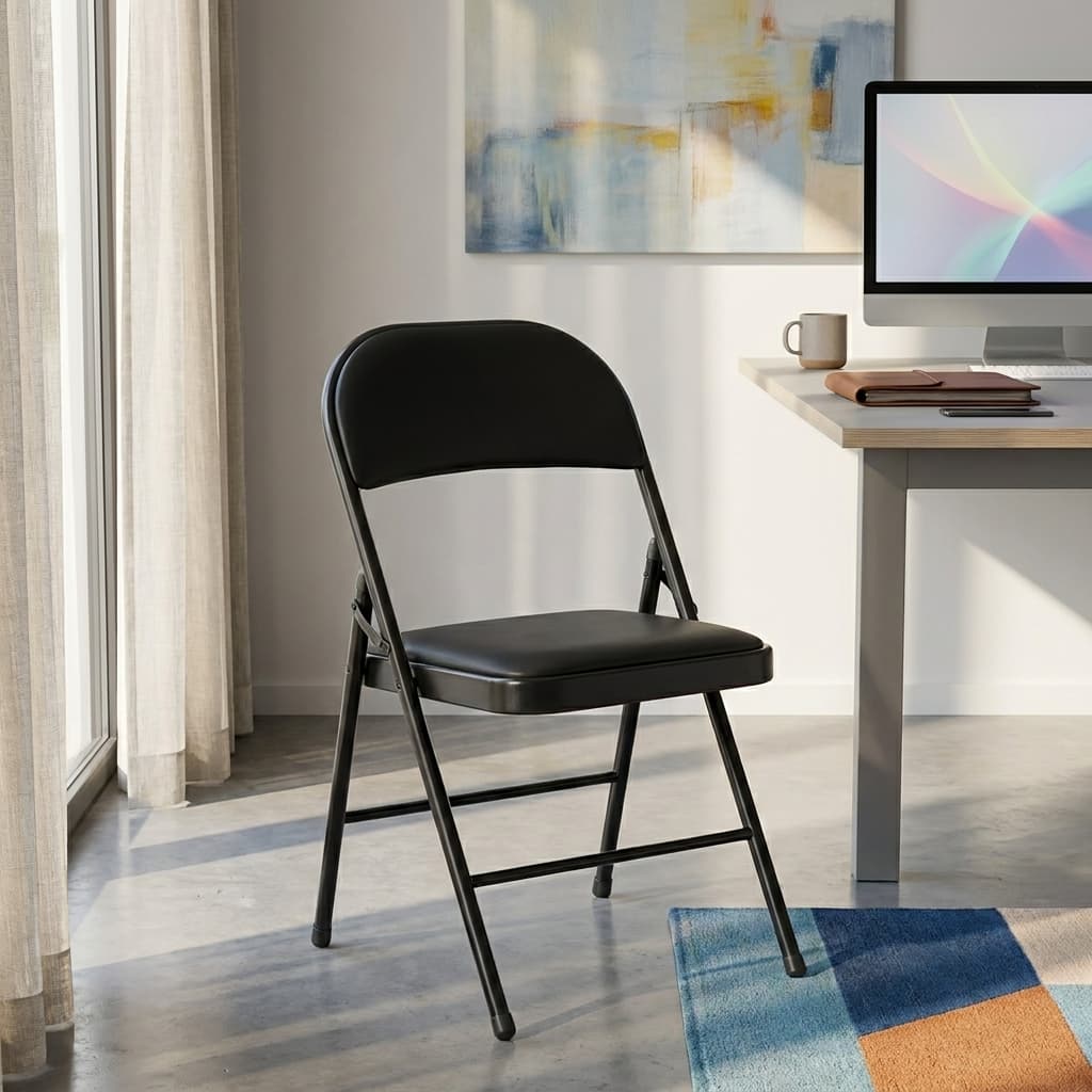 This chair features a strong metal folding frame that provides excellent stability and long-lasting durability. The heavy-duty steel construction supports regular use without bending or weakening, making it ideal for both personal and commercial environments.
