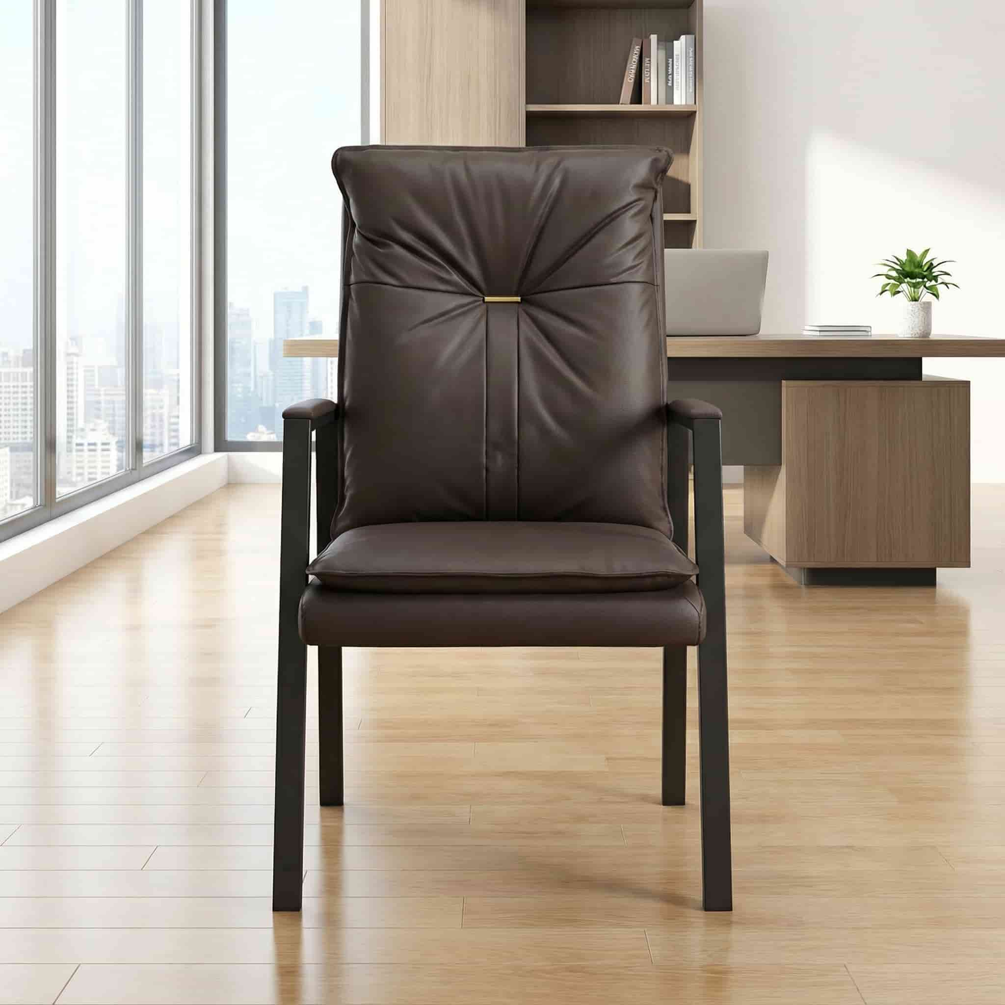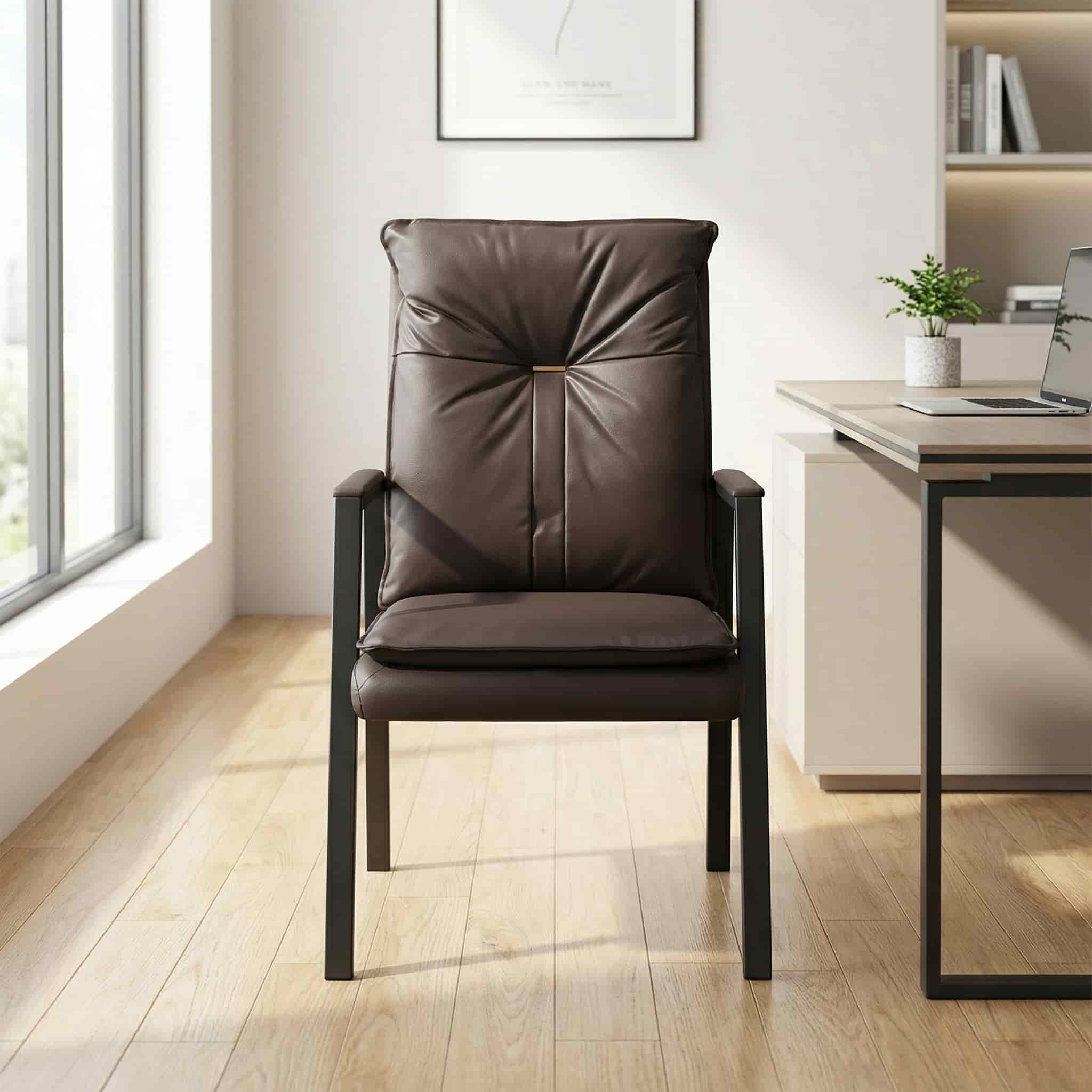 Whether used as a reception chair, visitor chair, or accent armchair, this piece creates a warm, inviting atmosphere while maintaining a professional and stylish appearance.