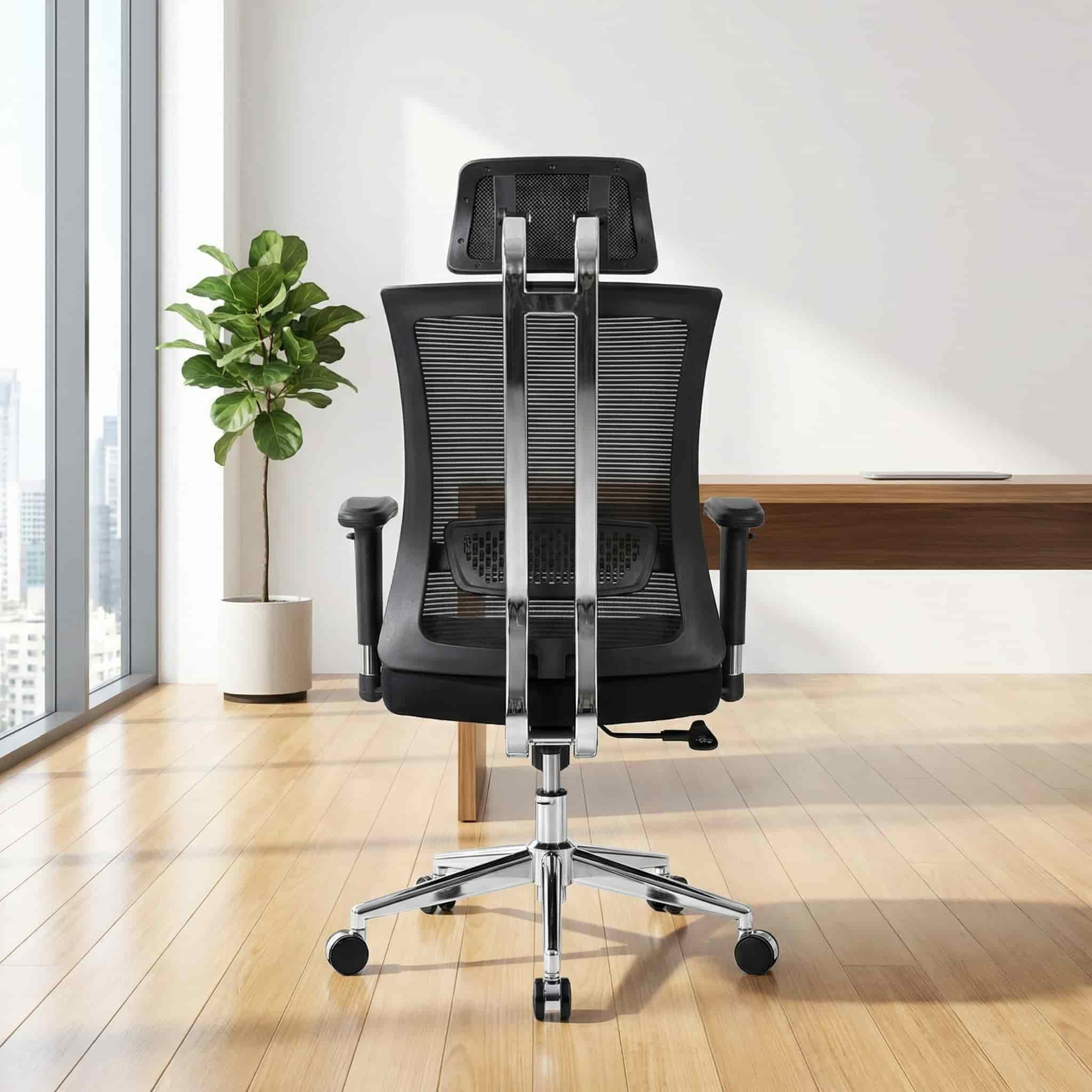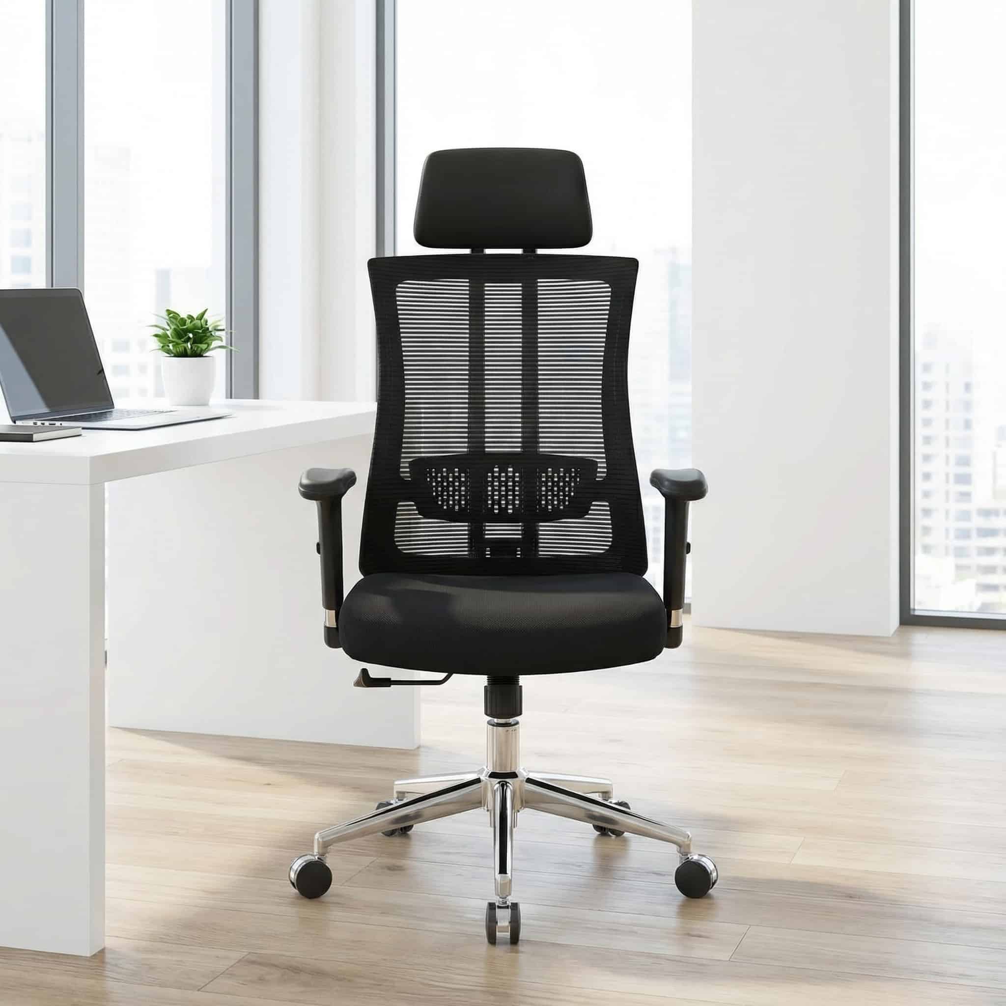 The high-back design offers full upper body support, including the neck, shoulders, and spine, helping reduce fatigue during extended sitting periods. Its breathable mesh back enhances airflow, keeping you cool and comfortable throughout the day, while the padded seat cushion provides firm yet relaxing support.