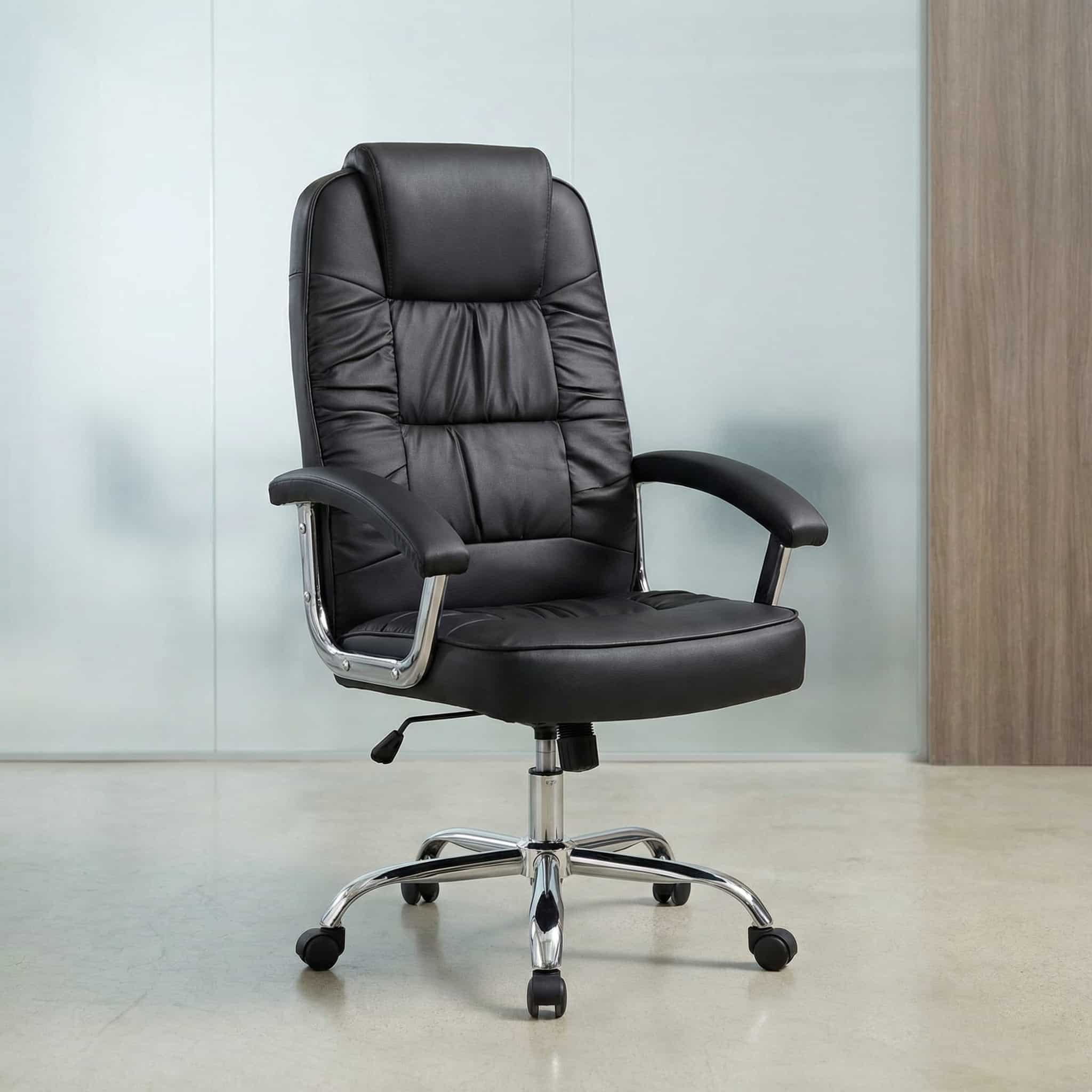 Black PU leather finish with chrome base accents for a modern office look