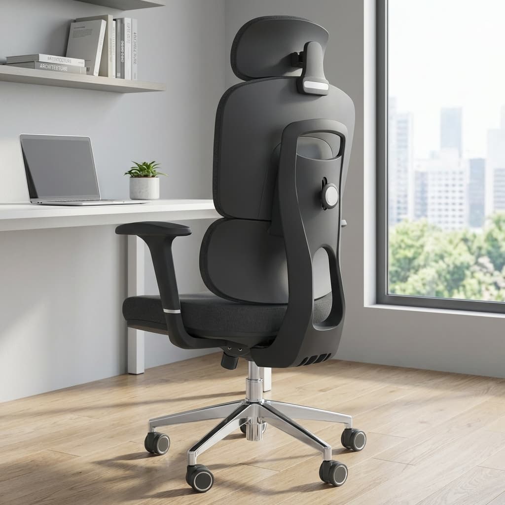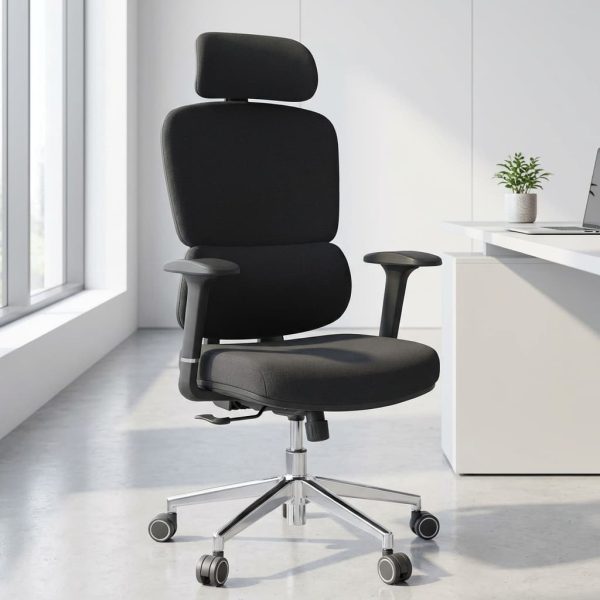 Upholstered in breathable fabric, it provides all-day comfort while reducing heat build-up. The adjustable headrest supports the neck and upper back, while the adjustable backrest ensures proper lumbar positioning to minimize strain. With adjustable armrests, you can align your arms comfortably to reduce shoulder and wrist fatigue.