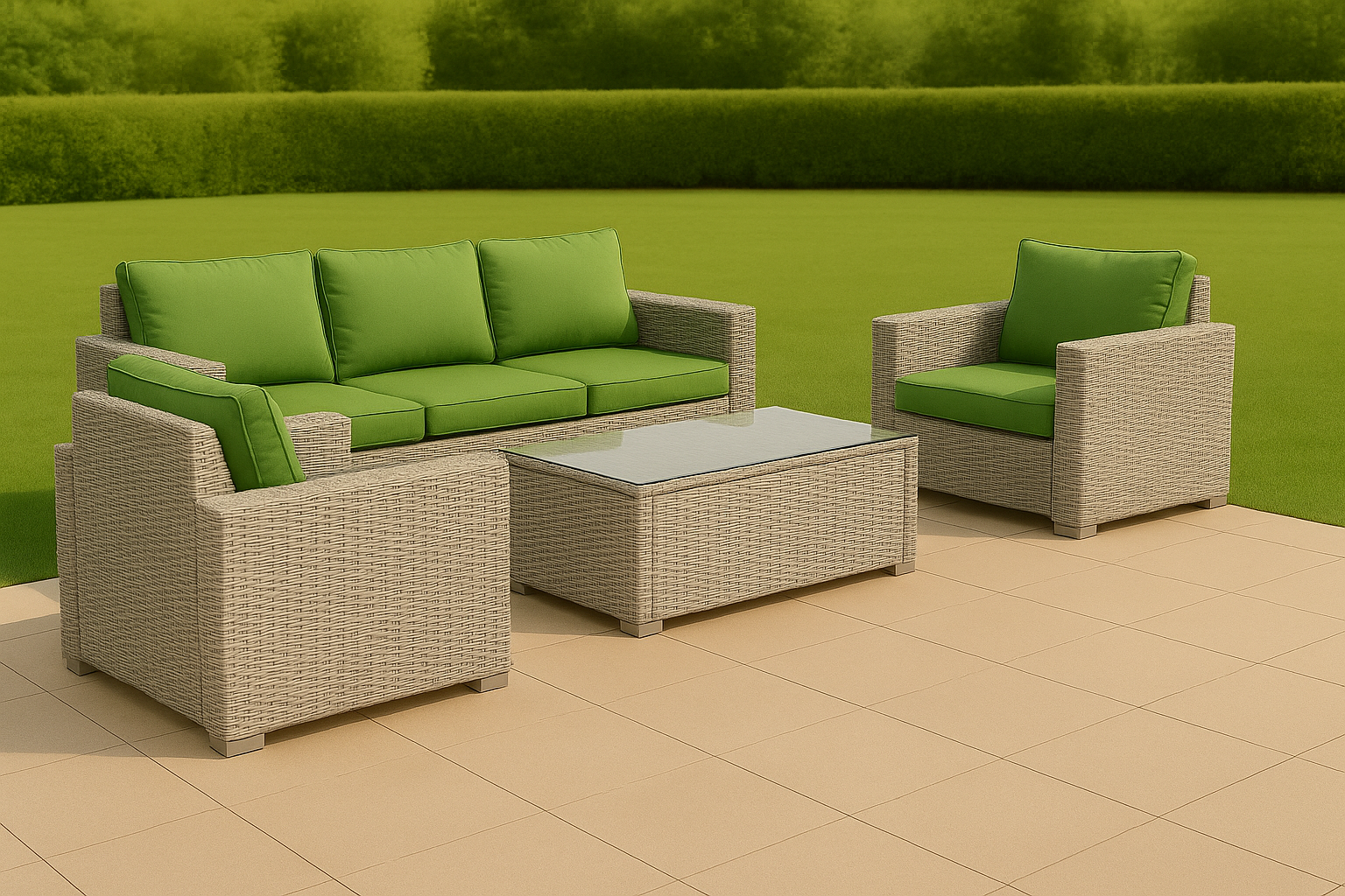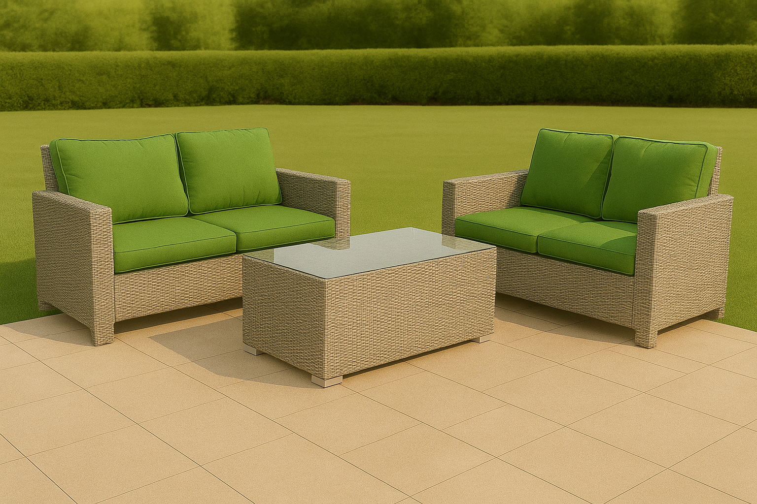 • Color: Natural rattan with green cushions