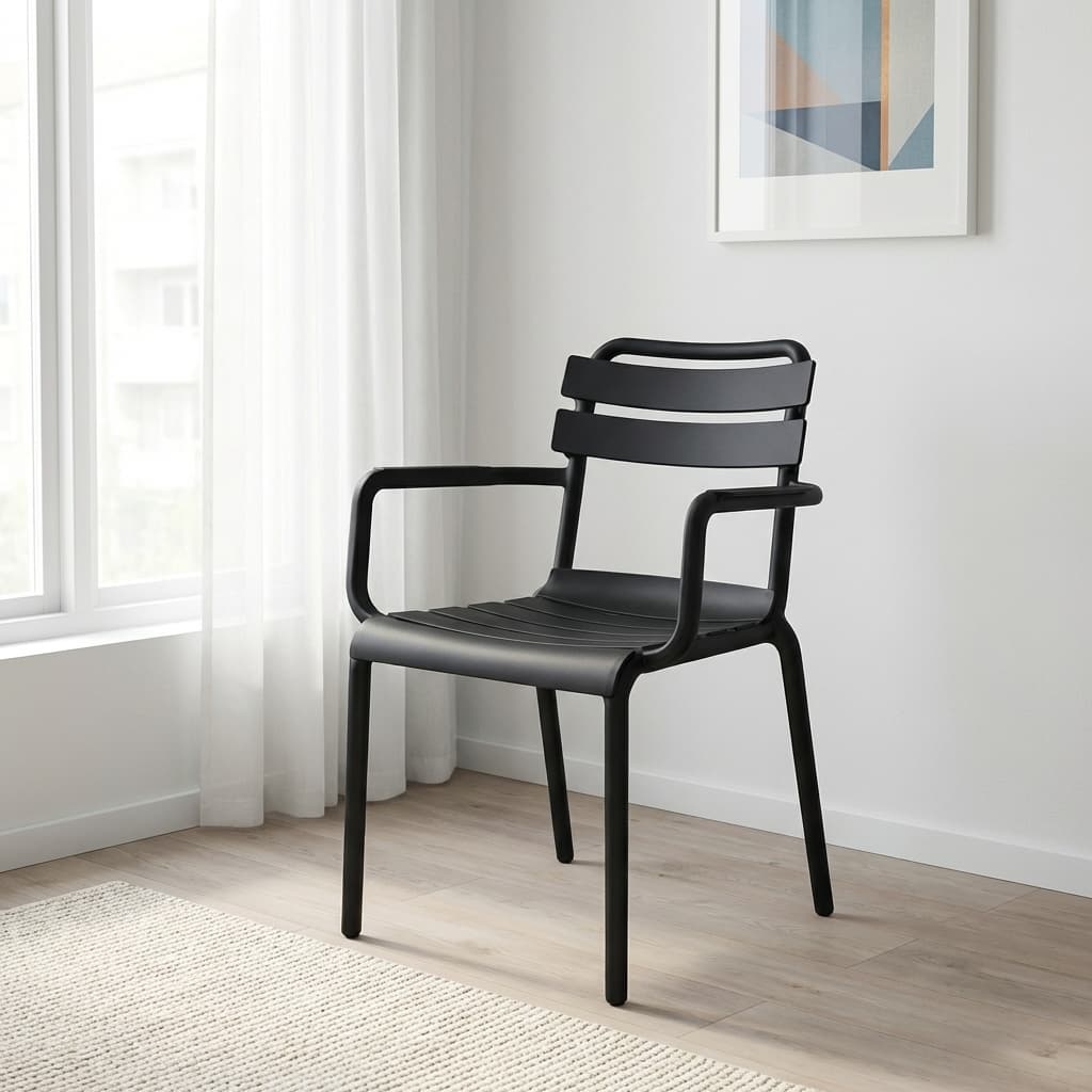 Overall, the Outdoor Arm Chair Black combines durability, comfort, and modern design, making it a practical and stylish addition to any space.
